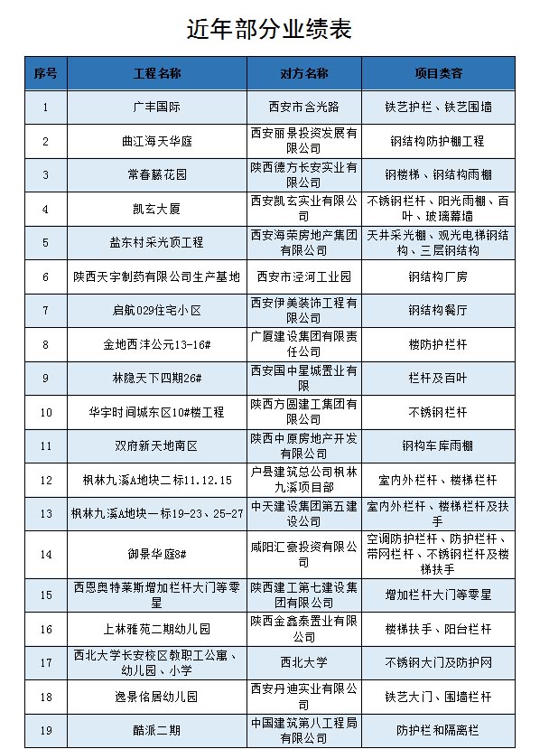 公司自創(chuàng)建以來,一直不斷完善產(chǎn)品體系,以******的管理團(tuán)隊(duì)推行量化管理和目標(biāo)技術(shù)管理,達(dá)到企業(yè)高度和諧持續(xù)發(fā)展的經(jīng)營理念,遵循“誠信做人,踏實(shí)做事”的經(jīng)營思路,本著“技術(shù)創(chuàng)新為源,質(zhì)量誠信為本”的經(jīng)營策略,恪守誠信、踏實(shí)、敬業(yè)、拼搏的態(tài)度,高效、專業(yè)、系統(tǒng)、科學(xué)化的管理。目前,業(yè)績覆蓋政府公立項(xiàng)目、大型商業(yè)圈、住宅等的輕、重型鋼結(jié)構(gòu)施工、樓宇及室內(nèi)外鋼結(jié)構(gòu)、幕墻、市政及地鐵圍擋、圍墻、門頭玻璃雨棚、車庫玻璃雨棚、臨建標(biāo)準(zhǔn)化防護(hù)、不銹鋼欄桿及大門、鐵藝欄桿及大門、各類型材及新型材料的欄桿、百葉、塑鋼門窗、不銹鋼、鋁合金、電梯門套及包邊裝飾工程、各類型材的地彈門等工程項(xiàng)目。