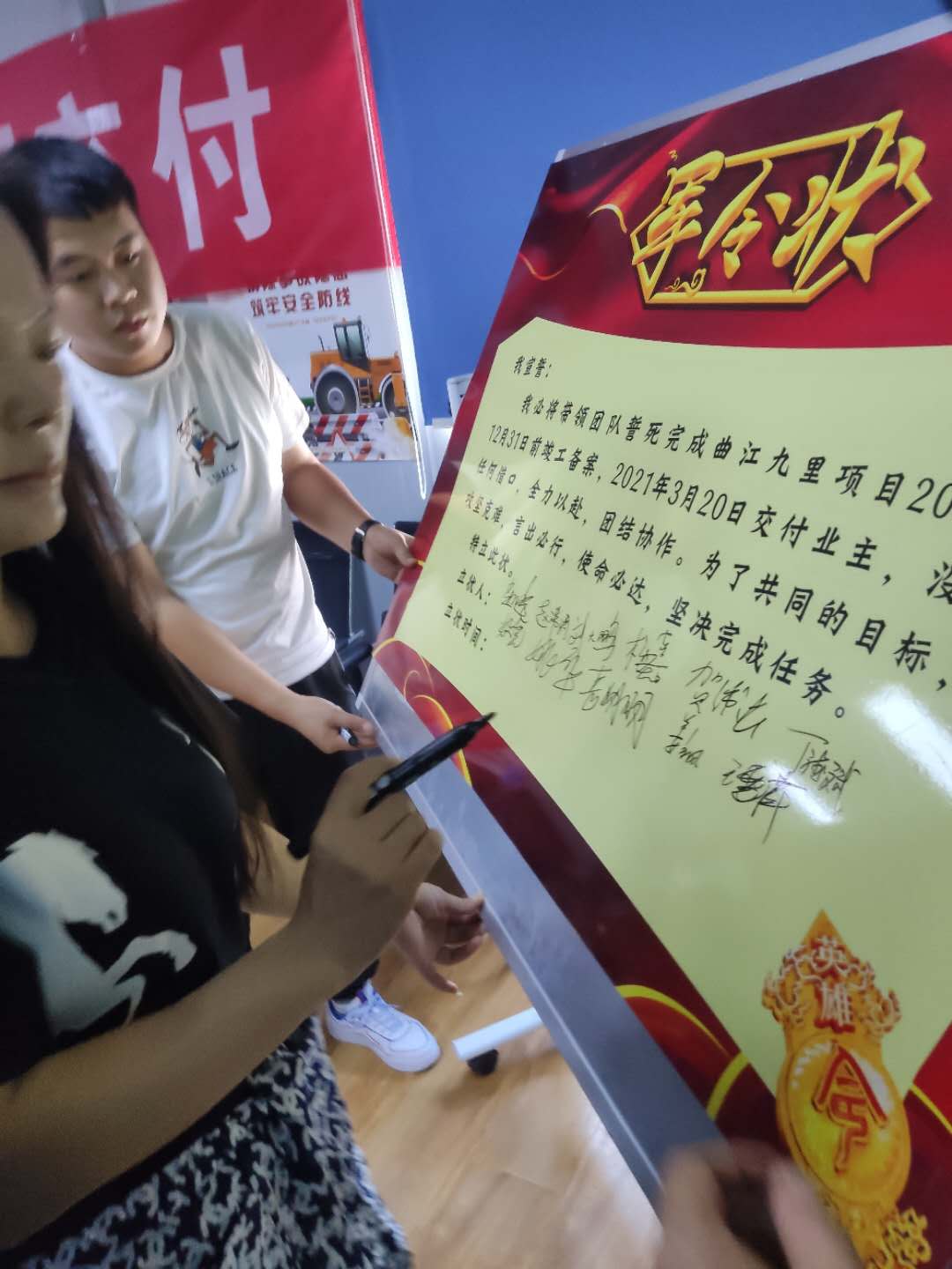 我司代表副總經(jīng)理王雪萍女士應(yīng)邀參加由華潤置地方舉辦的誓師大會,現(xiàn)場立下******保質(zhì)保量完成施工任務(wù)的軍令狀,可見我司對此項目的重視,這也為我們階段性的成功奠定了堅實基礎(chǔ)。