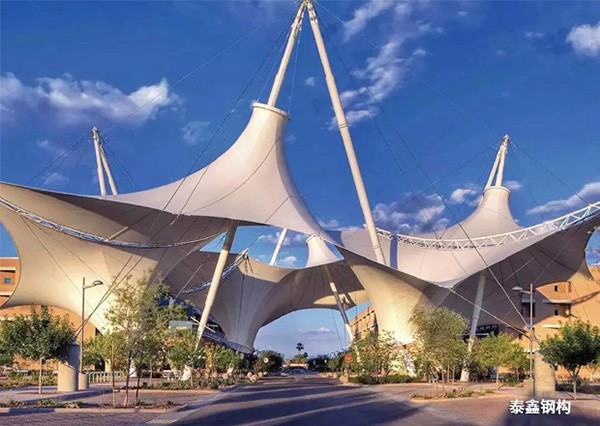 泰鑫鋼構(gòu)經(jīng)典膜結(jié)構(gòu)工程展示:泰鑫承接延安北大教育小鎮(zhèn)操場(chǎng)看臺(tái)工程、中建三局元朔大橋工程等膜結(jié)構(gòu)工程。